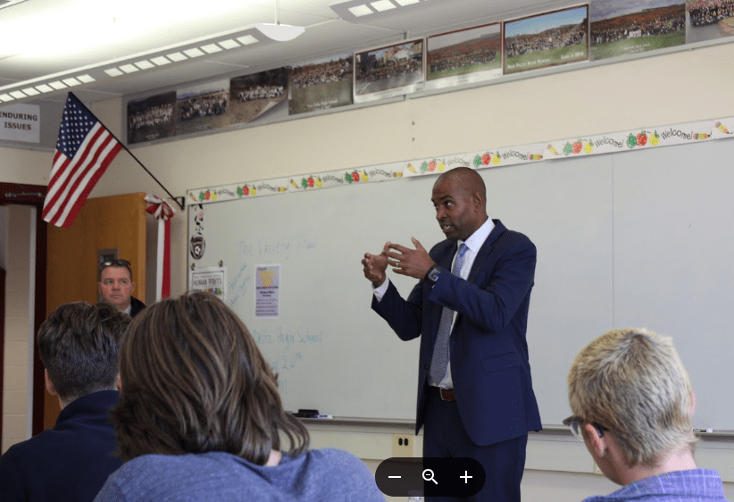 PIGLETS, a senior class led by Mrs. Masseo and Mr. Dolan provided students the space to contact leaders in government positions through a range of projects and discussions. While most students contacted local delegates around New Paltz, one group in particular, led by Julia McCloskey, used this as an opportunity to go above and beyond. On Monday, November 13th, Lieutenant Governor Antonio Delgado was invited to speak and inspire at New Paltz High School.